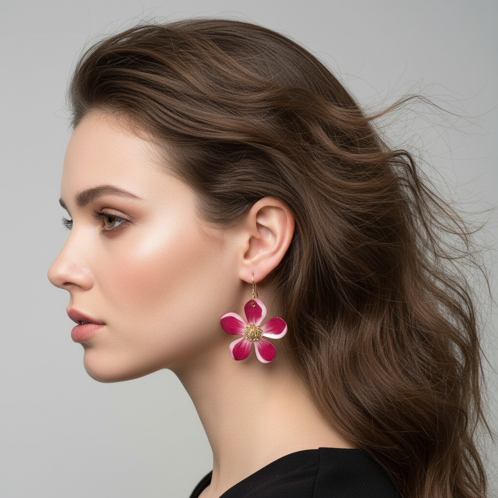 72 Published December 12, 2025 at 1024 × 1024 in Pink Floral Handmade Earrings – Lightweight Wooden Drop Earrings for Women ← Previous