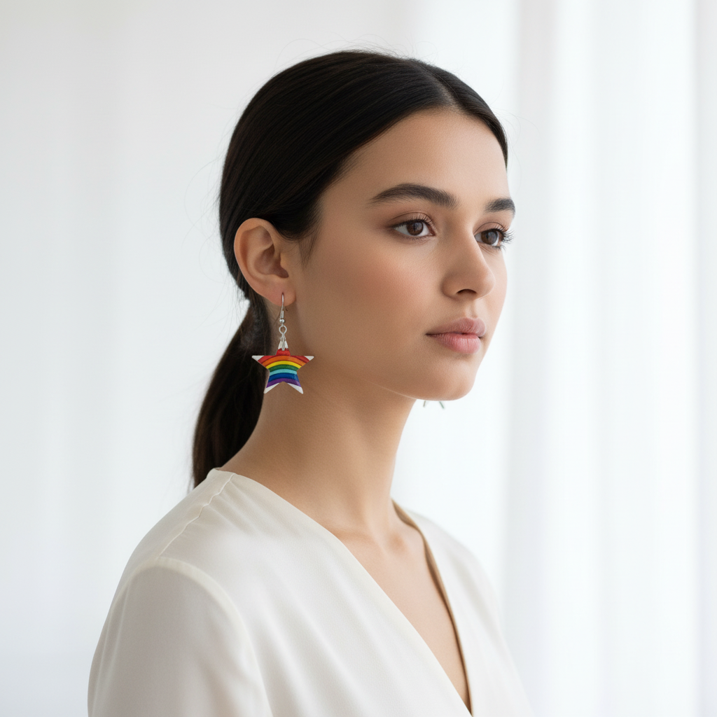 74 Published December 13, 2025 at 1024 × 1024 in Star Rainbow Handmade Earrings – Colorful Statement Dangle Hand Painted Earrings ← Previous Next →