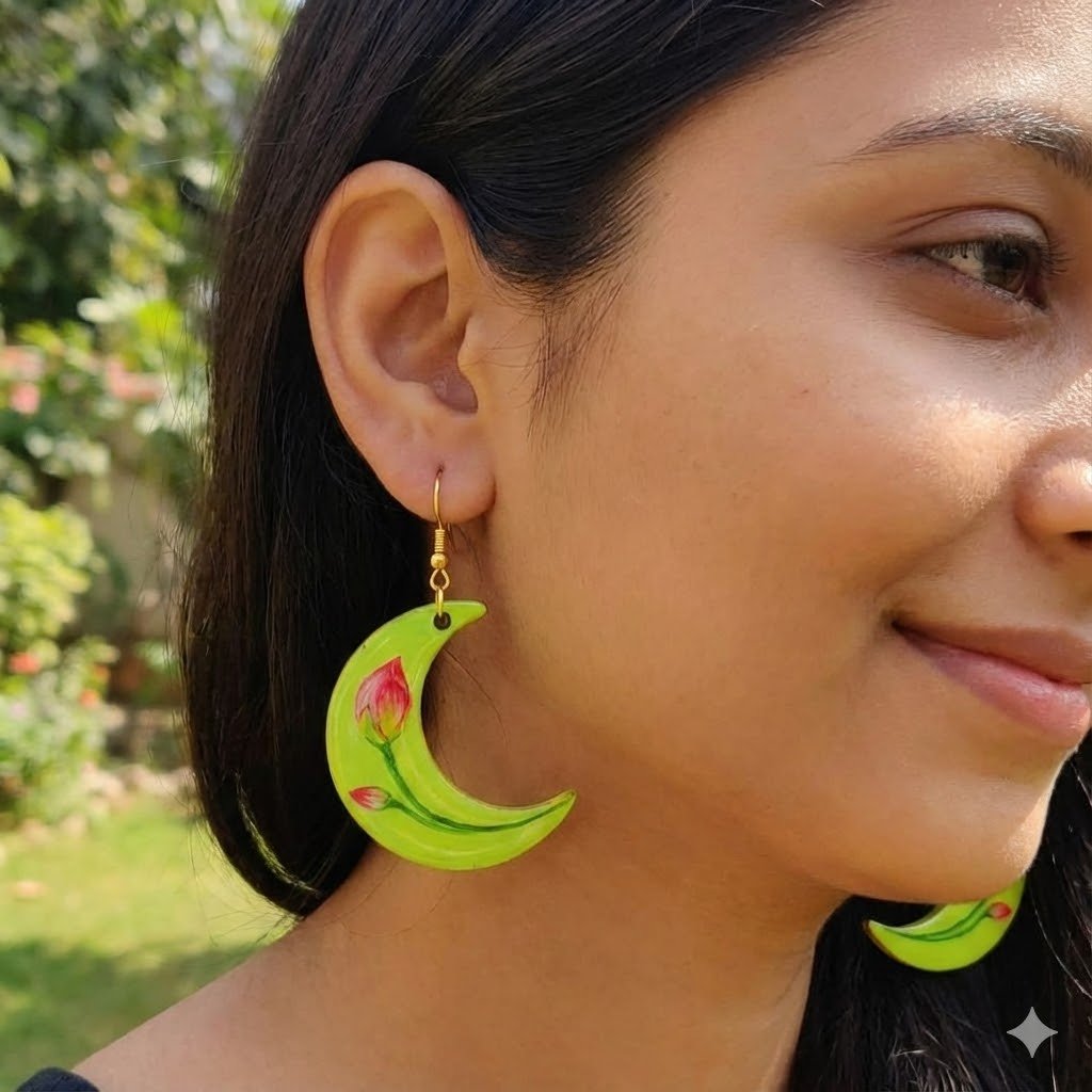 32 Published December 13, 2025 at 1024 × 1024 in Parrot Green Floral Hand Pained Earrings – Handmade Earrings for Woman ← Previous Next →