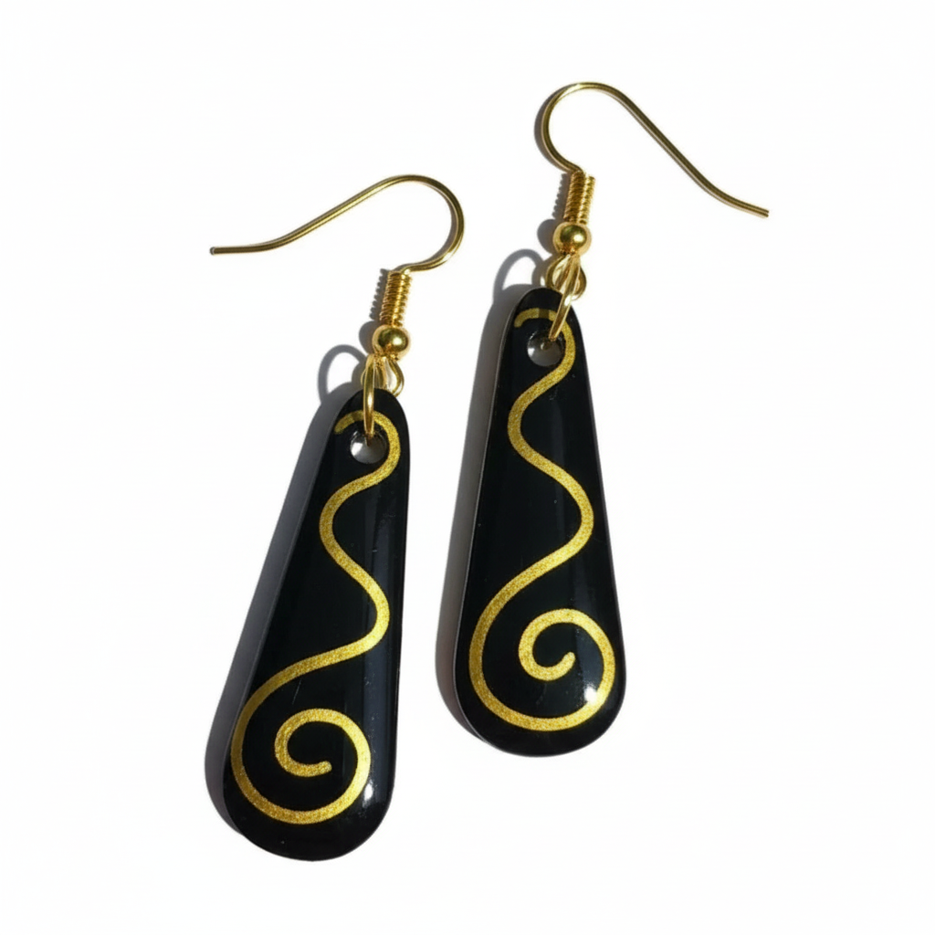 17 Published December 13, 2025 at 1024 × 1024 in Black Golden Spiral Hand Painted Earrings – Handmade Earrings for Woman ← Previous Next →