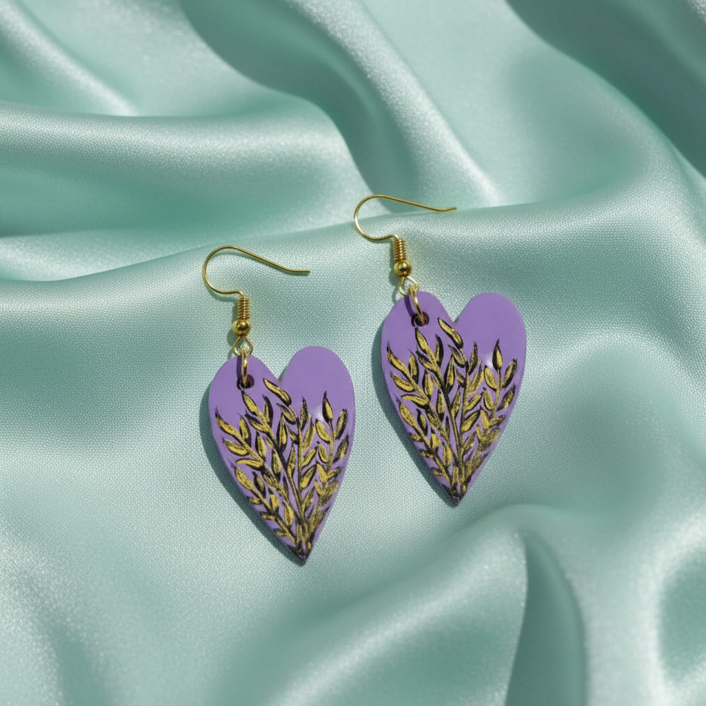 79 Published December 13, 2025 at 1024 × 1024 in Handmade Purple leaves Earrings – Hand Painted Drop Earrings for Girls & Women ← Previous Next →