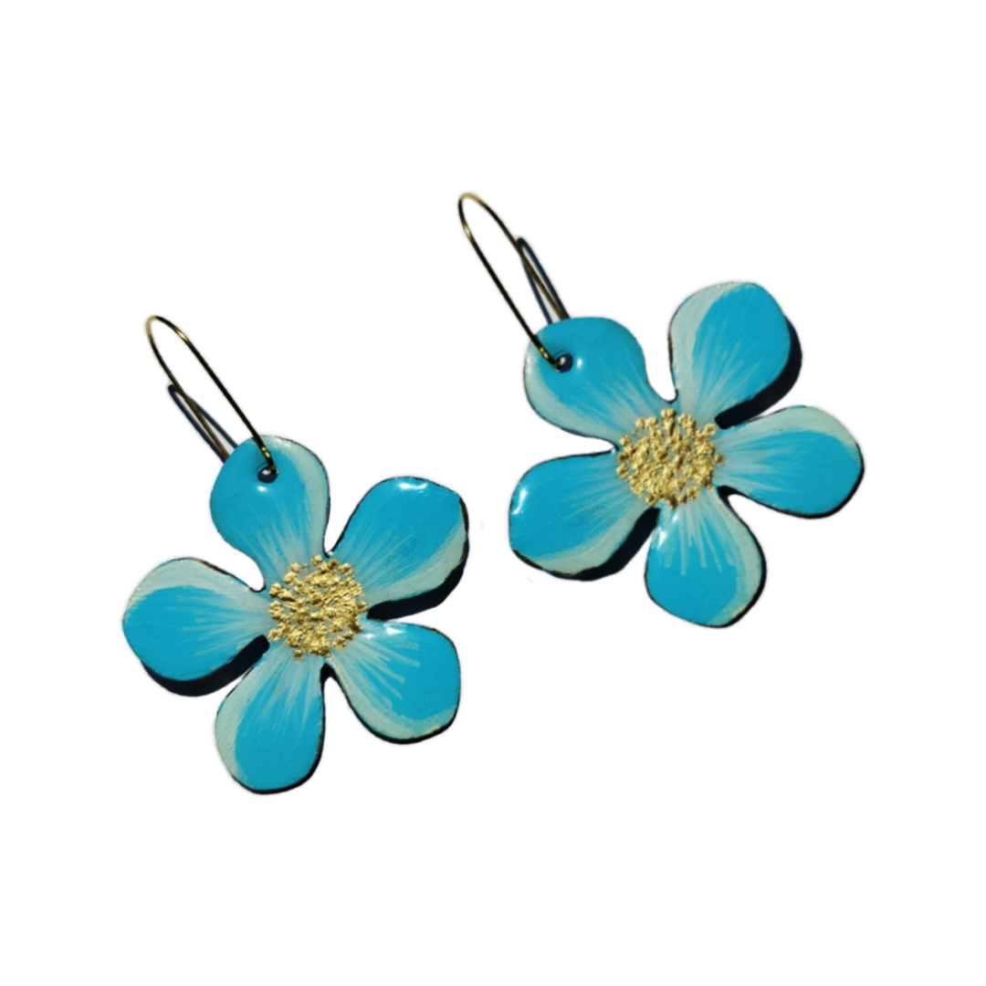 front Published December 15, 2025 at 1080 × 1080 in Sky Blue Floral Handmade Earrings – Lightweight Wooden Drop Earrings for Women (Copy) ← Previous Next →