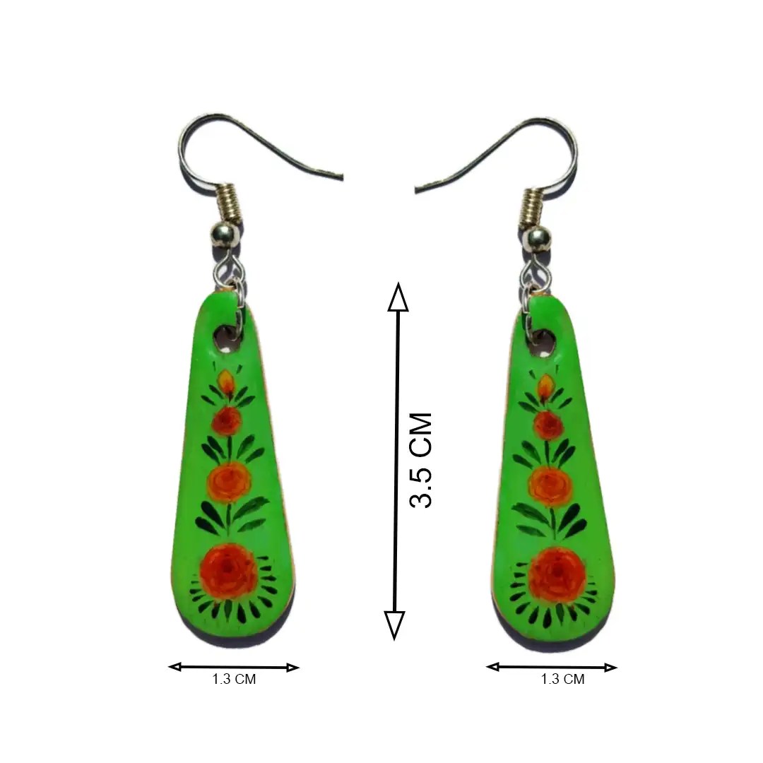 These hand-painted earrings jewellery are made using premium-quality hardboard, coated with a protective layer of epoxy resin for enhanced durability and a glossy finish. The lightweight construction ensures all-day comfort, allowing you to wear them effortlessly without any strain on your ears.