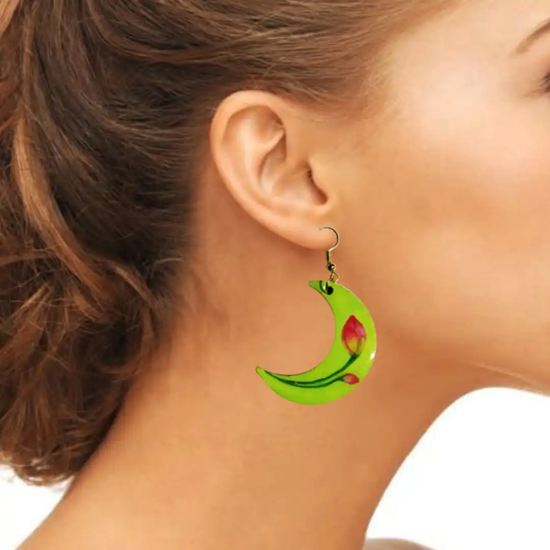 Parrot Green Floral Hand Pained Earrings – Handmade Earrings for Woman